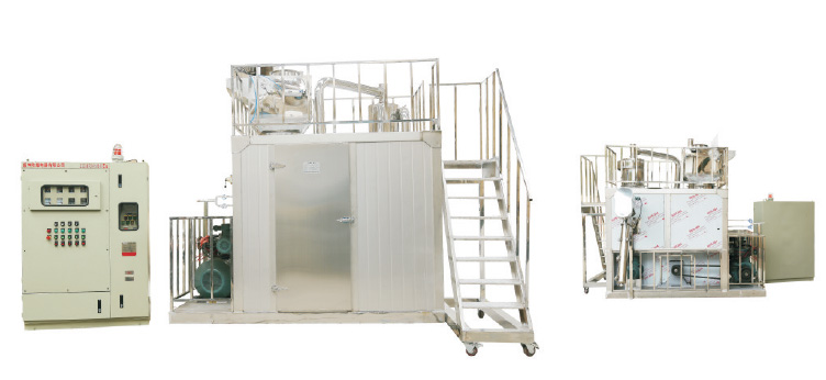 該低溫磨粉機系統在物料粉碎過程中,其冷源形成一個閉路循環系統,使能源充分利用,節省能耗:粉碎用的冷源溫度可降至負196度,根據物料的脆化點溫度,在粉碎過程中其溫度可調控,選擇粉碎溫度,降低能耗:粉碎細度可達到10-700目,甚至達到微米u等細度:使用液氦作為研磨介質,實現超低溫粉碎,物料的防爆,防氧化等綜合效果。